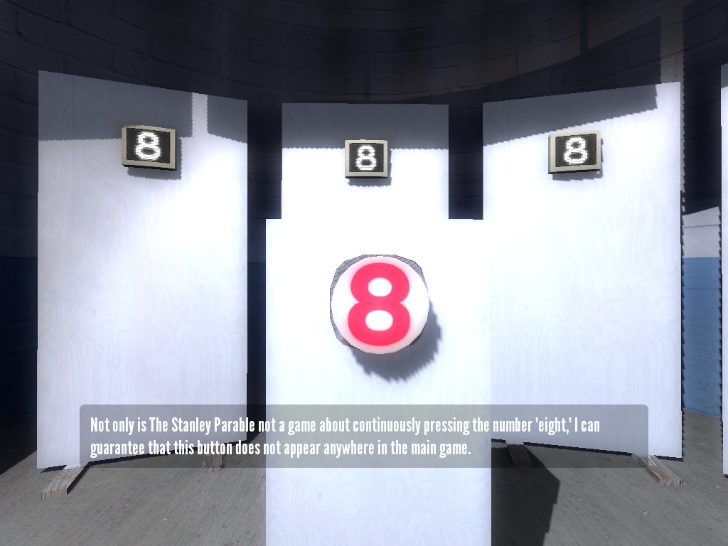 Fig 2. The infamous 8 Room, wherein the player can literally push the Narrator's buttons and essentially piss him off.